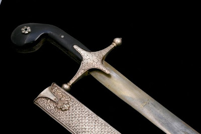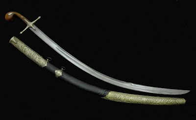 У сабли "шамшер" - узкий большой кривизны булатный клинок плавного изгиба.
